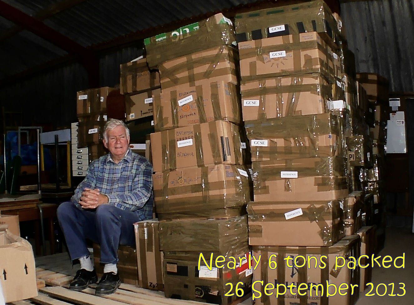 It's not all beer and skittles. Here is Rtn Alex Evans having a well-earned rest having packed books destined for Kandy
