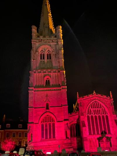 PURPLE FOR POLIO - FLOWERS ABOVE ILLUINATED CHURCH BELOW